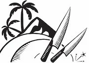 Knives without their own sheaths are wrapped in kitchen paper to protect blades and owners.